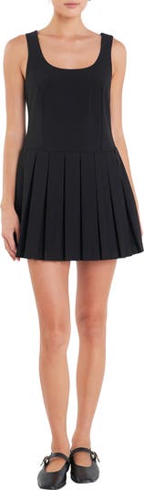 This sporty sleeveless mini is designed with a pleated skirt for swingy movement.