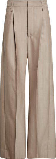 Pleated Virgin Wool Herringbone Straight Leg Pants