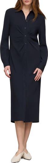 Pleated Waist Long Sleeve Finesse Crepe Shirtdress