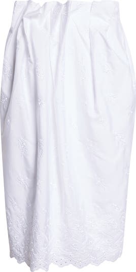Crisp pleats fan out like flower petals along the waist of this crisp cotton-poplin midi skirt from Rocha's spring '26 ode to girlhood in bloom. Scalloped broderie anglaise and intricate floral embroidery complete the romantic look.