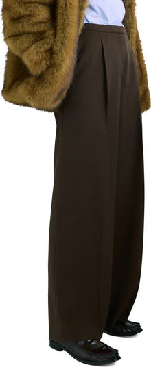 Sharp pleats enhance the texture and polish of these mid-rise pants punctuated with drapey wide legs.