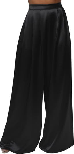 Sharp pleats accent these polished high-waist pants cut from glossy skin-skimming satin and finished with drapey wide legs.