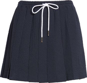 The label's classic school-uniform aesthetic takes lessons from the athletic department in this pleated miniskirt cut from extra-fine wool seersucker with a sporty drawstring waist.