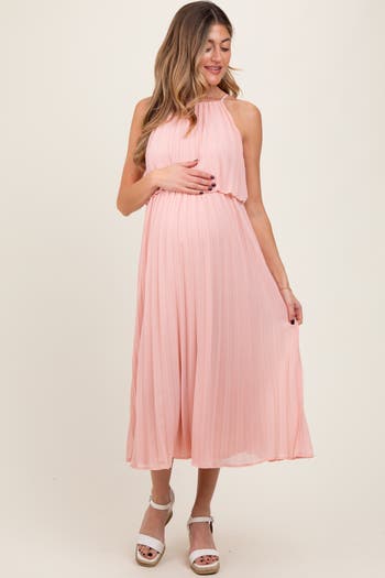 Add a touch of elegance to your maternity wardrobe with our Pleated Woven Maternity Midi Dress. Designed with comfort and style in mind, this dress features soft, lightweight woven fabric and beautiful pleats that flatter your growing bump. The midi length and fluttery sleeves create a feminine silhouette, while the gentle elastic waistband ensures a flexible fit throughout your pregnancy and beyond. Perfect for baby showers, brunches, or everyday wear — you'll love how effortlessly chic and comfortable you feel in this gorgeous dress!