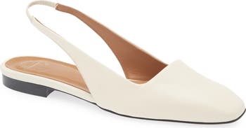 A square toe and slingback strap elevate the look of an essential flat fashioned from smooth Italian leather.