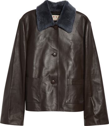 Paloma Lanna contemplates clothing as protection for fall '25, building everyday armor from sleek separates like this glossy Spanish-leather jacket with crisscrossed panels secured at the shoulder with silvery D-ring hardware.
