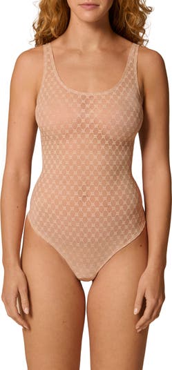 An intricate embroidery stitched in tonal threads bring artisanal beauty to this French-designed bodysuit finished with a no-show thong back.