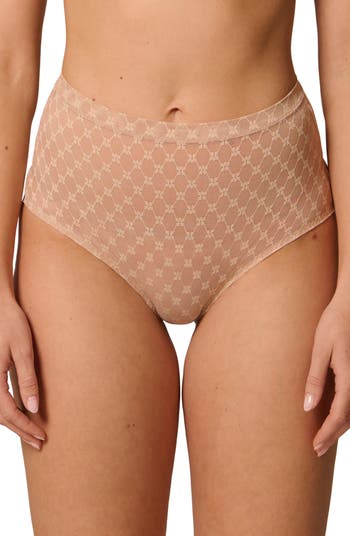 An intricate embroidery stitched in tonal threads bring artisanal beauty to these French-designed shaping briefs with light tummy control.