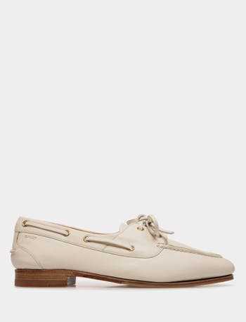 The Plume moccasin is a masterpiece of comfort, flexibility and lightness, here in white calfskin. A reinterpretation of a boat shoe, it features artisanal Goodyear Reverse construction, where the lining is sewn around the welt inside-out, like a glove, before being stitched to the upper.