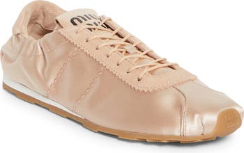 Crafted from silk-softened satin in a powder-inspired palette, this luminous sneaker features a softly scrunched collar and a sole studded with starry tread.