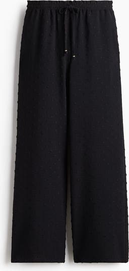 Loose-fit trousers in plumeti with a high waist featuring a small frill trim and smocked elastication with a narrow drawstring. Discreet pockets in the side seams and wide legs.