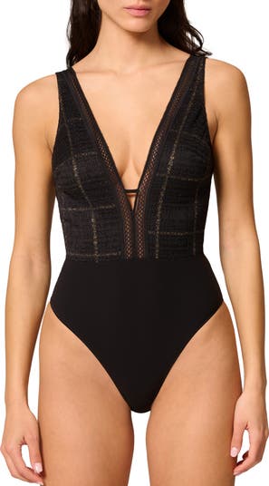 Feel your most breathtaking in this bodysuit made of sumptuous knit with a stretchy lace contrast.