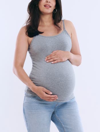 Motherhood's clip down nursing cami features a convenient clip-down mechanism for effortless breastfeeding or pumping on-the-go. This cami includes a built-in shelf bra that provides gentle support without added padding, ideal for all-day wear. Made from super cozy and soft fabric, it ensures all-day comfort and is perfect for snuggling with your baby, making it a must-have maternity essential for any new mom or mom-to-be!