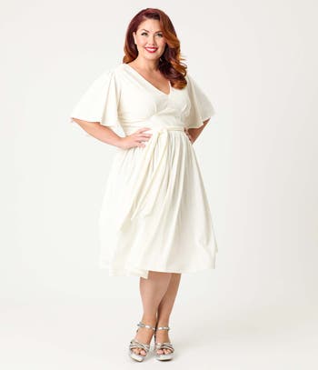 Plus Size 1940s Velvet Flutter Sleeve Swing Dress