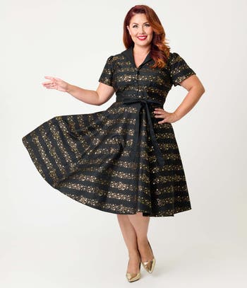 This delightful 1950s shirt dress captures the essence of retro elegance. The chic collar and self-tie sash accentuate your waist, adding a touch of femininity to this classic silhouette. With convenient side pockets and a front button-up design, it’s as practical as it is pretty!
