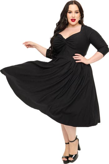 This darling swing dress features a chic front twist detail on the bust that beautifully accentuates your figure, while the three-quarter length sleeves offer just the right amount of sophistication. The luxurious fabric drapes effortlessly, making you feel as fabulous as you look.