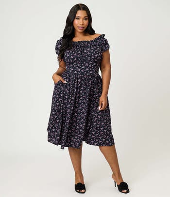 Plus Size 1950s Off The Shoulder Ruffle Swing Dress