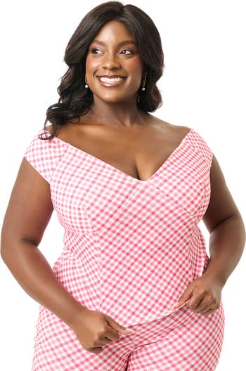 This sweet top is crafted in a woven fabric that features a side zipper and an off the shoulder neckline.