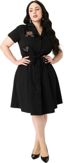 This thrilling dress features a flattering fit and flare silhouette that accentuates your curves while keeping things comfy. The button front is accented by a chic self-tie belt that cinches your waist. Complete with chest pockets and side pockets!