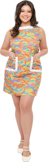 This fun and flirty woven 1960s dress is perfect for adding a pop of color to your wardrobe. The detailing adds a fresh touch, while the back zipper makes it easy to slip on. With front patch pockets for convenience and a sleeveless design with a scoop neck, this dress is stylish and practical.