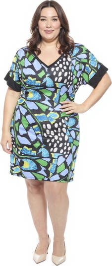 Add playful charm to your wardrobe with this plus size blue butterfly print short sleeve knee length T shirt dress from 24seven Comfort Apparel. Featuring a bold blue and green butterfly print pattern and a relaxed V neck fit, this dress offers casual comfort with effortless style. Perfect for pairing with sneakers, sandals, or ankle boots, machine washable and tumble dry for easy care.