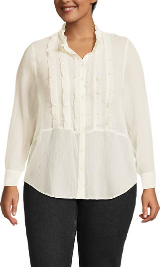 Plus Size Chiffon Ruffle Front Long Sleeve Top