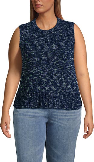 Plus Size Cotton Tweed Textured Crewneck Vest Sweater