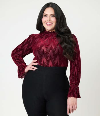 Unique Vintage Plus Size Donna Blouse, Alternate, color, Burgundy Lace