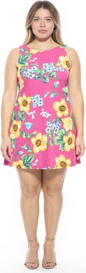 Plus Size Floral Round Neck Sleeveless A-Line Mini Shift Dress