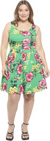 Add effortless polish to your everyday style with this plus size green floral print pleated dress from 24seven Comfort Apparel. The knee length pleated fit and flare silhouette features a scoop neckline, flattering slim fit waist, and softly pleated flared hem for timeless elegance and comfort. Functional side pockets add convenience, and it is machine washable and tumble dry for easy care.