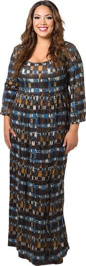 Make an impression with this bold geometric print plus size maxi dress, designed with a flattering empire waist and timeless long sleeves. The square neckline frames the face beautifully, while the floor length silhouette flows with ease for all day comfort. Perfect for adding a touch of modern elegance to your everyday look, this dress is a versatile choice for both casual and dressy occasions. Crafted from a soft, wrinkle resistant polyester blend, it ensures both comfort and effortless style.