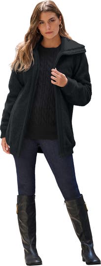 Textured fleece and ribbed trim make this high-collar bomber a cozy-cool choice for chilly weather. Where fashion meets function, perfect for fall or winter. With zip front closure and welt pockets.