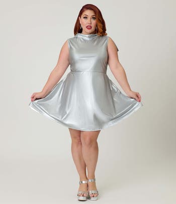Awful weird smell when I opened the bag it came in.The dress is kind of a plasticy material since it's very silver/metallic looking, so I guess that's why. But yikes! And it was much too large, I'd say size down if you want to give it a shot. So bummed, it looked so cute on the website! So I returned it, I'm waiting for my refund.