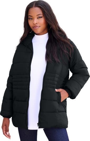 Roaman's Plus Size Lightweight Quilted Jacket, Main, color, Black