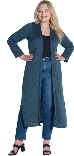 Plus Size Long Duster Open Front Knit Cardigan