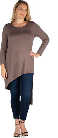 Plus Size Long Sleeve Knee Length Asymmetrical Tunic Top