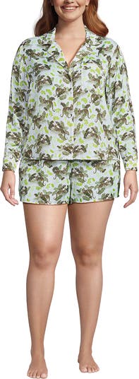 Plus Size Matte Satin 2 Piece Pajama Set - Long Sleeve Top and Shorts