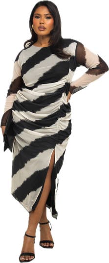 Embrace elegance with our Plus Size Monochrome Print Midaxi Dress, designed for style and comfort, perfect for any occasion.