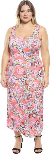 Elevate your wardrobe with this plus size orange and pink paisley print tank maxi dress from 24seven Comfort Apparel, designed to effortlessly transition from day to night. Featuring a feminine scoop neckline and racerback detail, it offers both comfort and style. The fitted a-line maxi-length silhouette makes it perfect for work with a blazer or evenings out with heels and jewelry. Made from soft stretch fabric and machine washable for easy care.