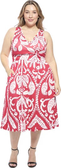 Bring effortless charm to your wardrobe with this plus size red paisley print sleeveless pleated pocket dress from 24seven Comfort Apparel. The fit and flare silhouette moves gracefully with soft pleating, while the V neckline adds polish. Functional pockets boost everyday ease. Pair with sandals or heels for versatile warm weather style, machine washable and tumble dry for simple care.