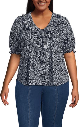 This elbow sleeve top is all about soft femininity from the smocked puff sleeves to the ruffle-trimmed V-neckline. Pintuck accents along the front add subtle texture, while the straight fit skims the body without clinging. Crafted in a textured and soft all-cotton slub jersey, it feels as lovely as it looks. A charming, easy-to-wear style that pairs beautifully with everything in your wardrobe.