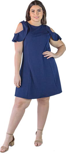 Plus Size Ruffle Cold Shoulder A Line Knee Length Dress