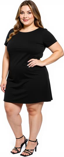 Plus Size Solid Short Sleeve Round Neck Mini Shift Dress
