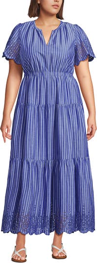 Plus Size Tiered Cotton Poplin Eyelet Maxi Dress