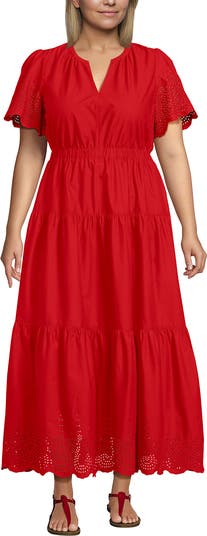 Plus Size Tiered Cotton Poplin Eyelet Maxi Dress