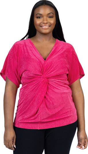 Plus Size V Neck Knot Front Cap Sleeve Top