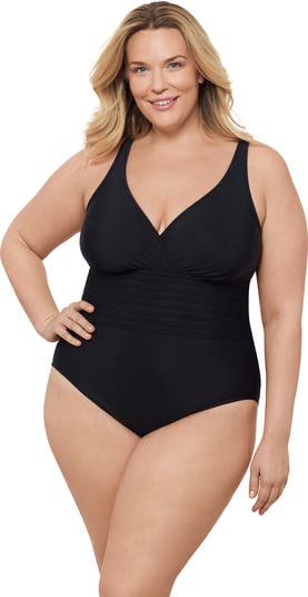 Plus Size V-Neck Surplice Trim Overlay Full Coverage One-Piece Swimsuit