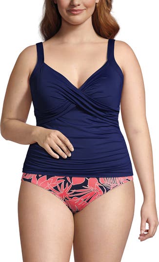 This tankini top provides coverage while showcasing your style. The eye-catching wrap front accentuates the bust, and the V-shaped neckline draws the eyes upward and elongates the body. Plus, the fabric provides UPF protection and it's chlorine resistant, too, meaning it retains its shape and lasts longer.