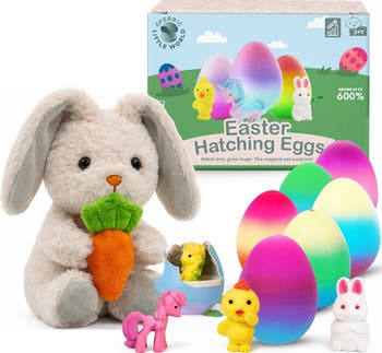 - Soft and Kid Safe Materials: Plush bunny made from ultra soft, baby safe fabric, paired with durable, non toxic hatching eggs for worry free play.