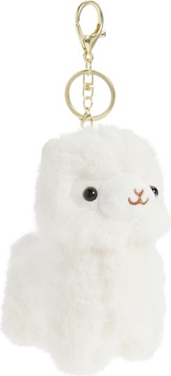 Add a cuddly finish to your keychain or favorite handbag with this adorable charm that's shaped like a sweet llama from fluffy faux fur.